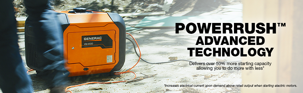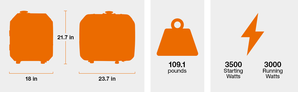 Brand Generac Wattage 3500 watts Fuel Type Gasoline Power Source Gas Powered Recommended Uses For Product Residential, Camping Item Weight 109.1 Pounds Voltage 120 Volts (AC) Output Wattage 3500 Watts Special Feature Portable, Electric Start, Super Quiet, Low Oil Shutdown, Fully Enclosed Design Included Components Generator Color 50-State / CARB Compliant Product Dimensions 23.7"L x 18"W x 21.7"H Model Name IQ3500 Engine Type 4 Stroke Frequency 60 Hz Item Weight 109.1 pounds Manufacturer Generac Customer questions & answers