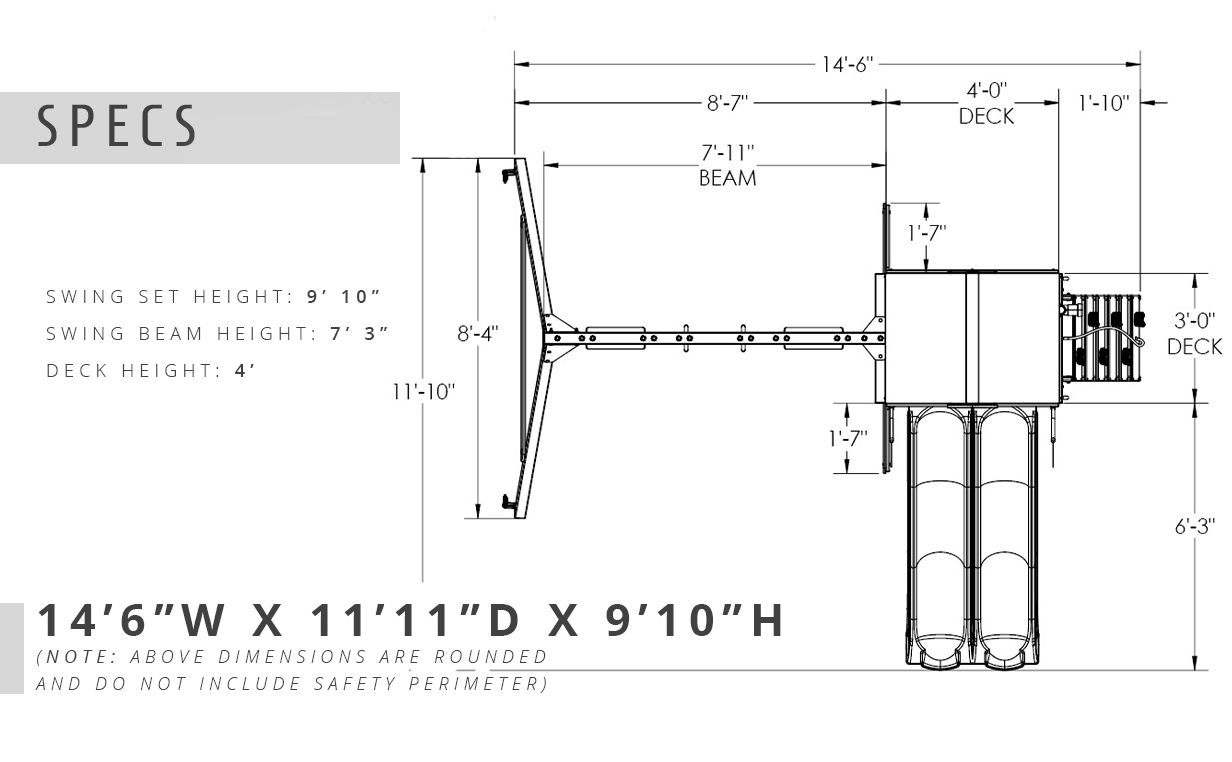 Have double the fun with the Playmaker Deluxe Wood Swing Set by Gorilla Playsets. This high-quality swing set provides hours of outdoor activities for your child to enjoy, like the rock climbing wall, the built-in sandbox area, two Alpine Wave Slides, and much more. The heavy-duty Deluxe Vinyl Canopy protects the upper play deck from the weather elements and provides shade on hot days. This outdoor playground includes all required hardware, lumber, and a fully illustrated instruction manual to ease assembly. Gorilla Playsets' lumber comes pre-cut, pre-sanded, and pre-stained to help reduce the time of installation. The beautiful redwood stained cedar wood naturally resists rot, decay, and insect damage. The Playmaker Deluxe Swing Set meets the American Society of Testing Materials (ASTM) safety standards for residential use only.