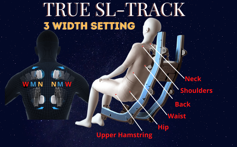 - Humanized Quad Rollers detect the users height, you can adjust the width, you can massage from Neck to full back to buttocks to upper hamstrings.