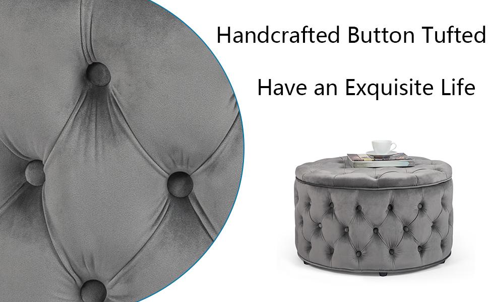 【Furniture】Homebeez Round Velvet Storage Ottoman, Button Tufted Footrest Stool Coffee Table