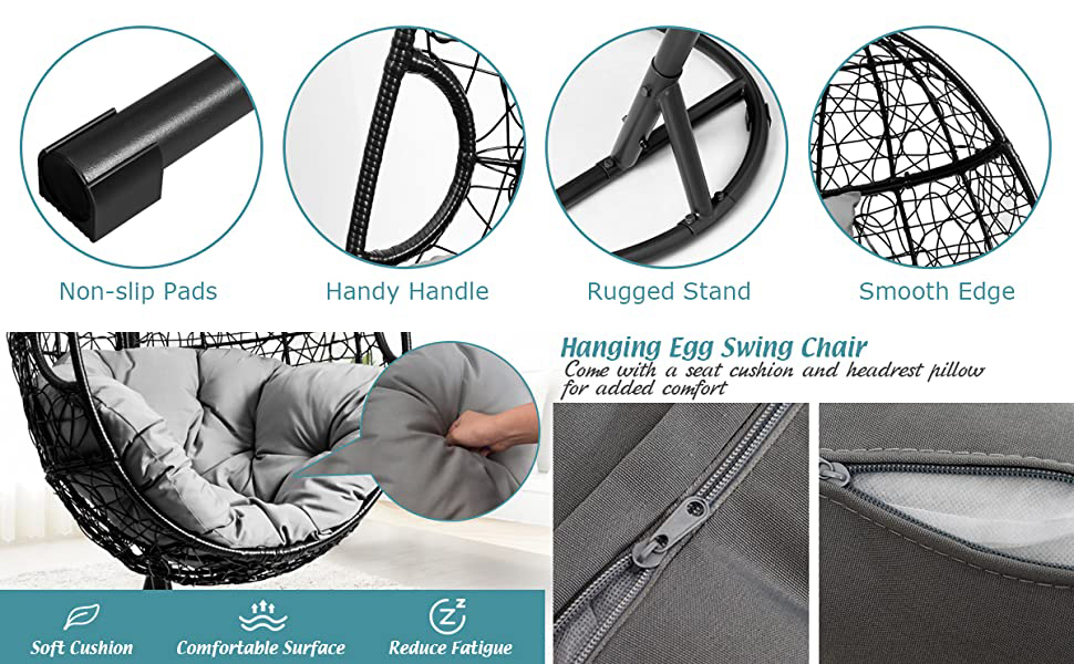 • Indoor/Outdoor Use: The swing chair is designed for both indoor and outdoor use. Unique egg-shape appearance blends with the surrounding environment better and adds a special leisure feeling. ❤️❤️❤️Please kindly note: This hammock stand and hammock chair set will be shipped in 2 boxes.❤️❤️❤️