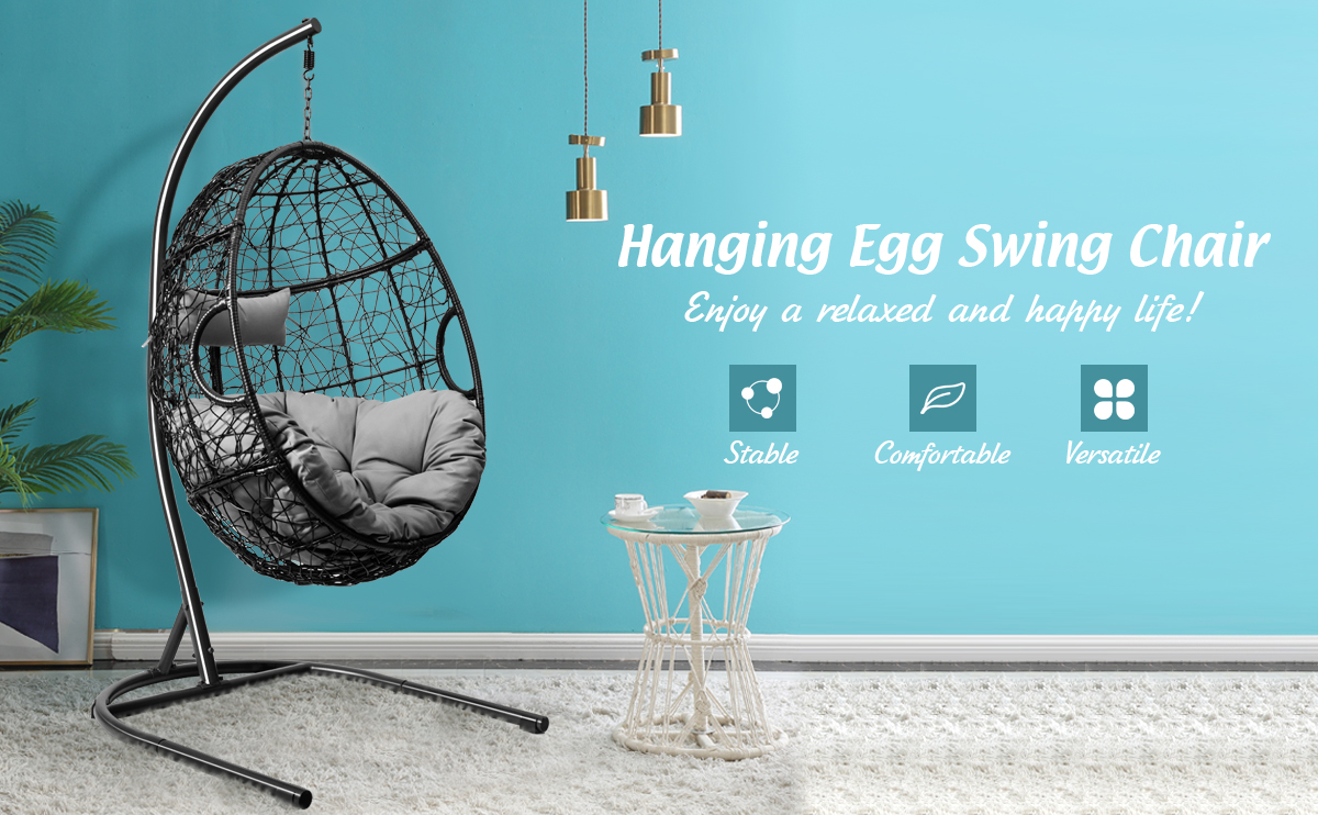 The hanging hammock chair is the best choice for better enjoying your leisure time. It consists of a stable C stand and chair. You can sit in this comfortable swing chair and enjoy your leisure time. It can hold you well with enhanced frame and safety hook and provide an extra balance to use with more convenience. Heavy-duty metal frame with non-slip pads can always keep this egg chair stable and won’t fall over easily. The soft fiber-filled seat cushion and headrest pillow offer a luxurious comfortable and reduce the fatigue. You can use it indoor or outdoor as you like.