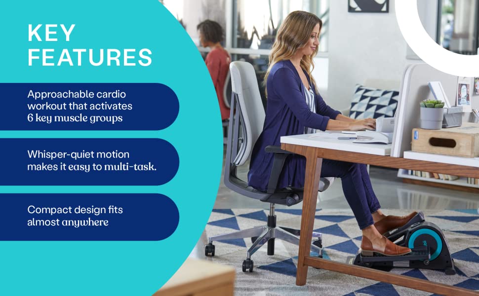 - LOW IMPACT, ULTRA SMOOTH ELIPTICAL EXERCISE MACHINE - Move a little more each day to reach your wellness goals! Use this under-desk elliptical, burn calories, improve mobility, and increase strength