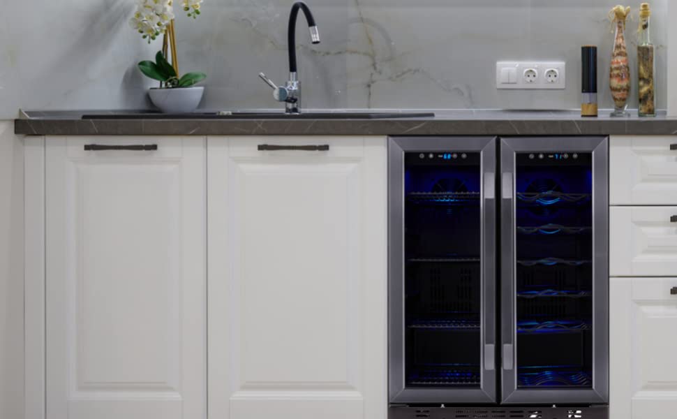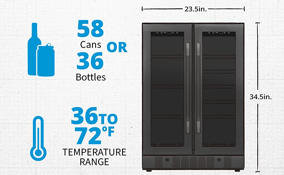 [ALL YOUR FAVORITE DRINKS IN ONE PLACE] - This dual zone beverage fridge has two side-by-side storage areas so you can keep red wine warm and carbonated drinks icy cold. Opening one door at a time lets the other side maintain its temperature for optimal storage conditions.