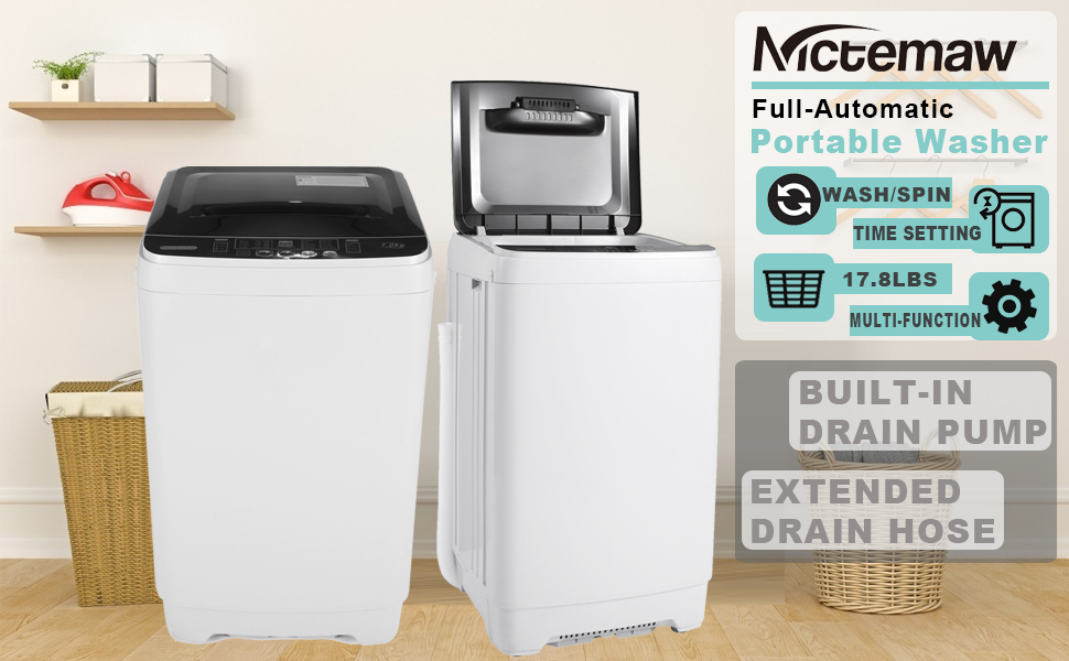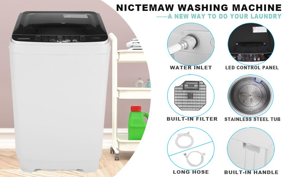 【Appliances】Portable Washer Nictemaw 17.8Lbs Capacity Full-Automatic Washer Machine 1.9 Cu.ft