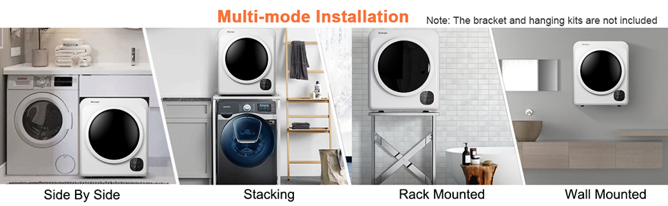 💨【Portable & Space-saving This electric laundry dryer weights only 59.5 lbs. Power: 120V, 60Hz. 23.5"x 20"x 27.5"(Lx W x H) portable size perfectly fit your apartment, dorm room and the little corner of the house. You can wall mounting it, place it on firm horizontal ground or rack mounted.