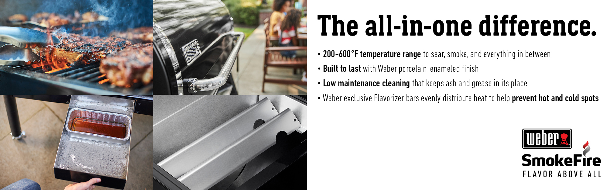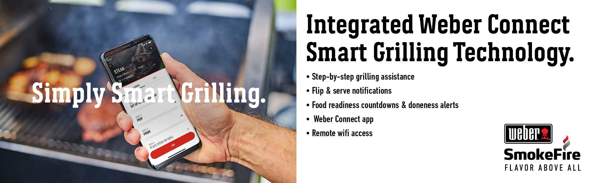 Take your favorite recipe outside, because everything that can be cooked, will taste better grilled. With its 200-600° temperature range, SmokeFire is a true All-in-One grill that has the versatility to sear steak as well as it smokes brisket, bakes pie and everything in between. With Weber Connect, perfecting any dish has never been easier. It’s a step-by-step grilling assistant, built into the grill, that sends notifications on everything from when it’s time to flip and serve to a food readiness countdown.