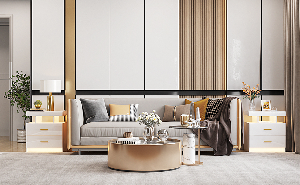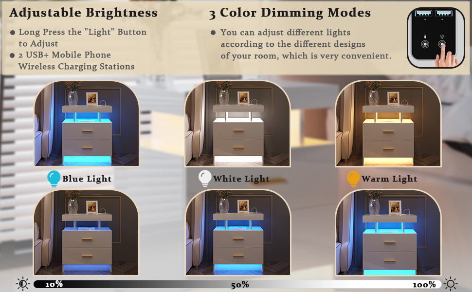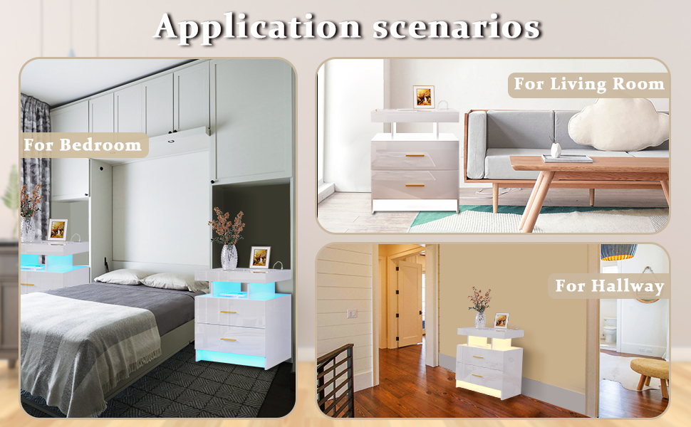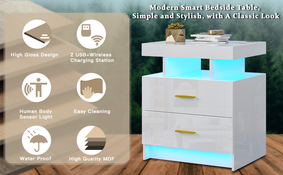 ✅【High-quality board】 This LED bedside table is made of high-quality white wood grain board, the high-gloss wood board material is easier to clean, durable and good-looking style to better match your home life