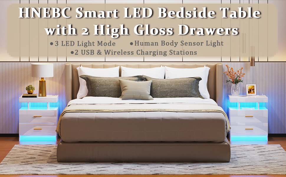 • HNEBC smart high-gloss bedside table High-end appearance, multi-functional design combined with 2 drawer storage, very convenient storage. Suitable for any bedroom/living room/office/apartment/game room etc