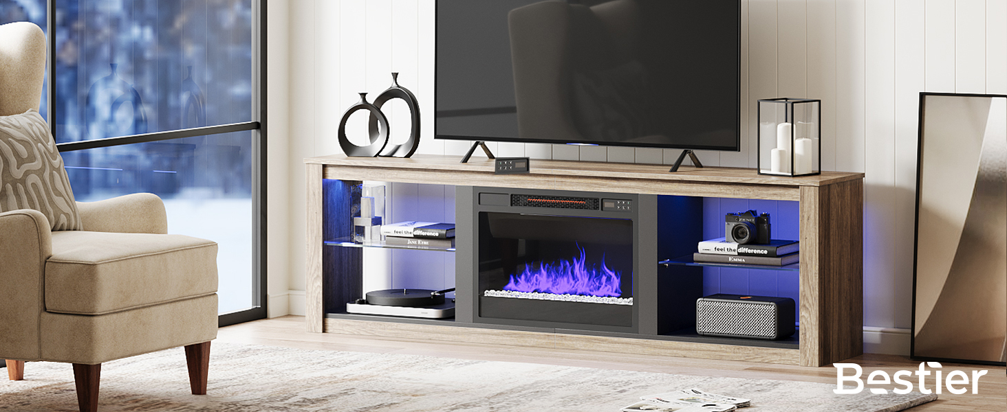 • Modern Design: Made of CARB certified P2 particle board, Bestier fireplace tv stand has great stability and durability.