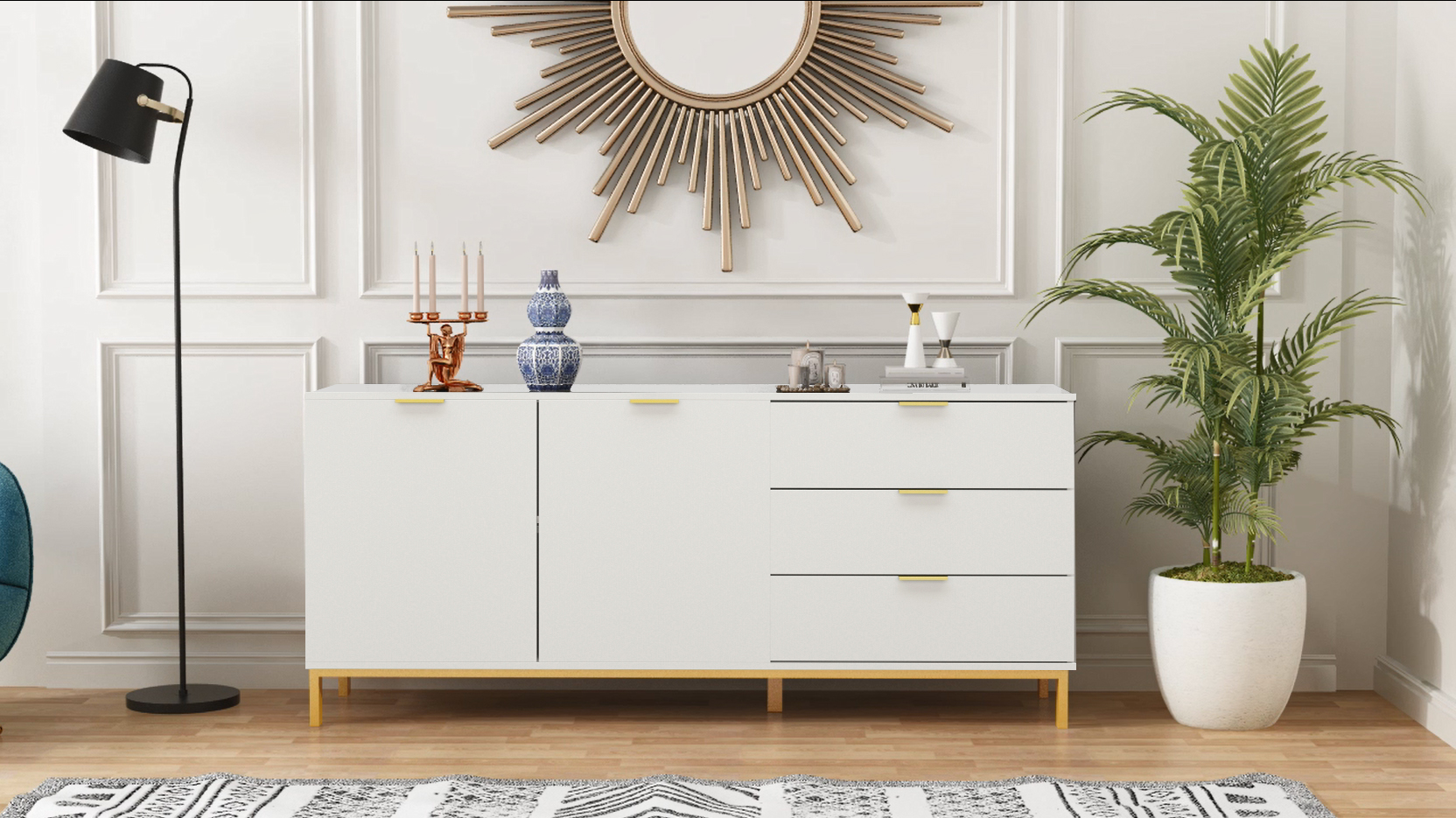 • 【Large Storage Space】3 spacious side drawers and cabinets with 2 doors, this buffet cabinet provides abundant space to store whatever you need. The 62.9 inch wooden top allows you to display your decorations, photo albums & TV set.