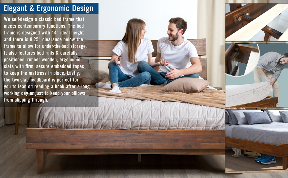 • Acacia Bed Frames are ergonomically designed for non-stress, ready to assemble experience in under 1 hour, no box spring needed. All instructions and tools neatly included