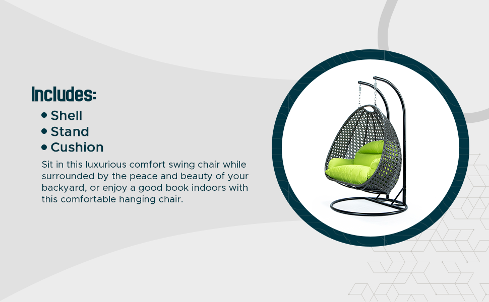 Answer:You'll receive everything shown in the photo - the chair base, the hanging support frame and chains, the chair basket and the cushion.
