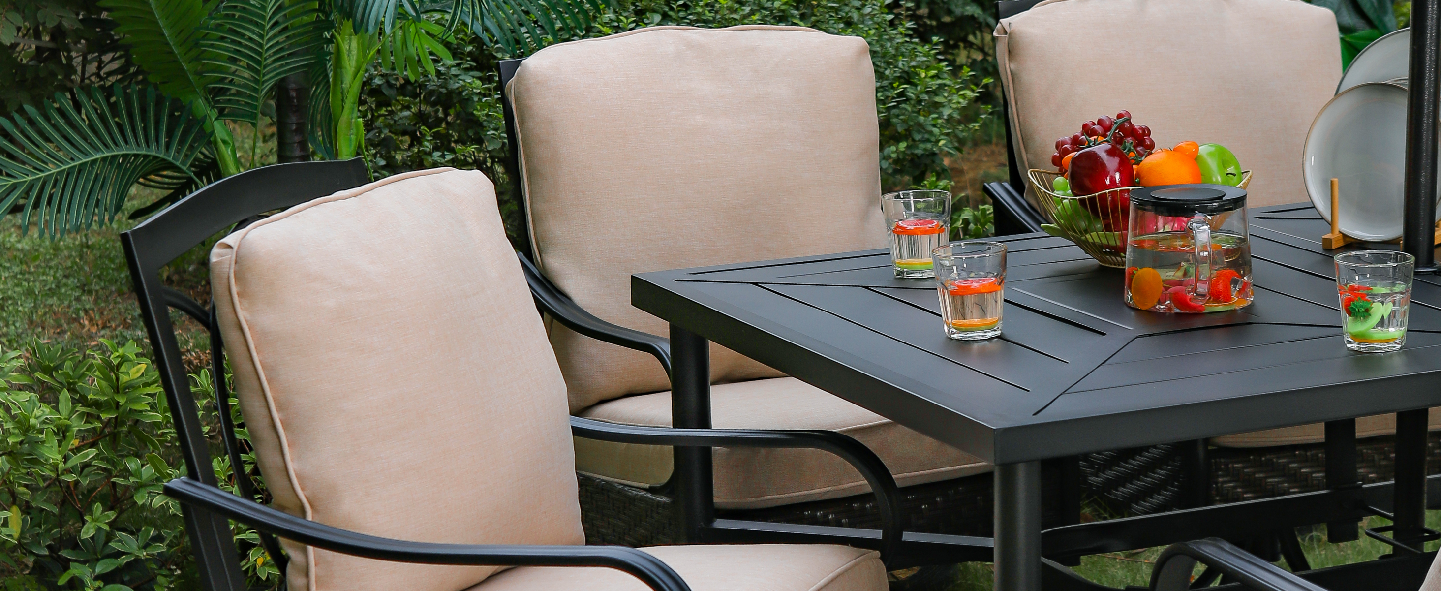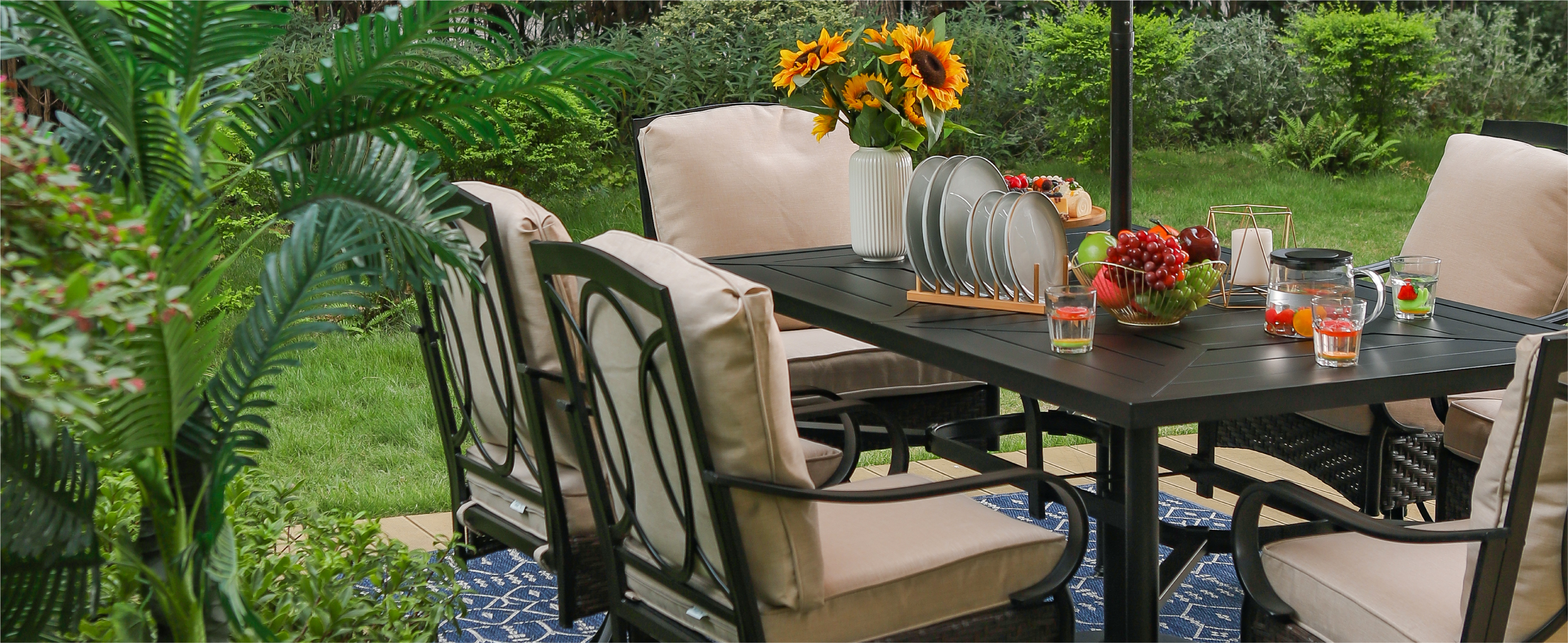 - 【Extra Large Dining Table】Our outdoor dining table is larger than others. It can meet your daily family needs when matched with our patio dining chairs. The all metal steel material makes this dining table more durable and usable.