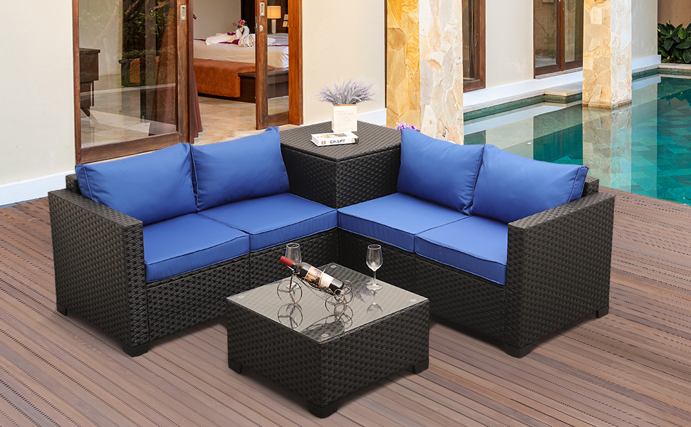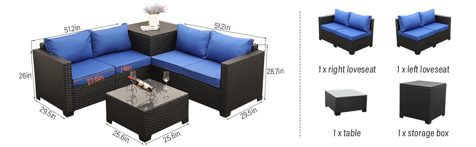- STORAGE TABLE: This 4 piece furniture come with the storage table, when not in use the furniture, you can put the cushions into it to extend the service life.