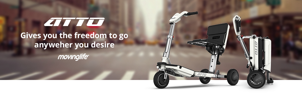 MovingLife develops life-changing solutions for people with mobility needs. The ATTO is a contemporary mobility scooter that combines smart design with rugged functionality - without compromising on style. ATTO is optimised for travel by any mode of transportation, from Compact Cars, to Trains, Cruise Ships and Airplanes. With its lightweight usability and easy transition between regular, compact and trolley modes, ATTO is the ideal companion to take with you on any journey. The world doesn't stop at your corner shop and neither should you.