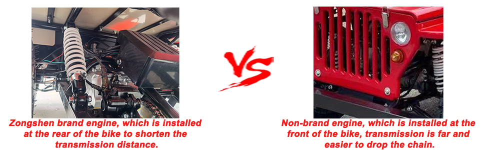 • Free Upgraded 123.7cc Powerful Zongshen Engine: The engine is located under the seat (the most central position of the cart), makes the gokart remains stable during driving. The distance between the engine and the rear axle is shortened, which makes the bike more tension and powerful.