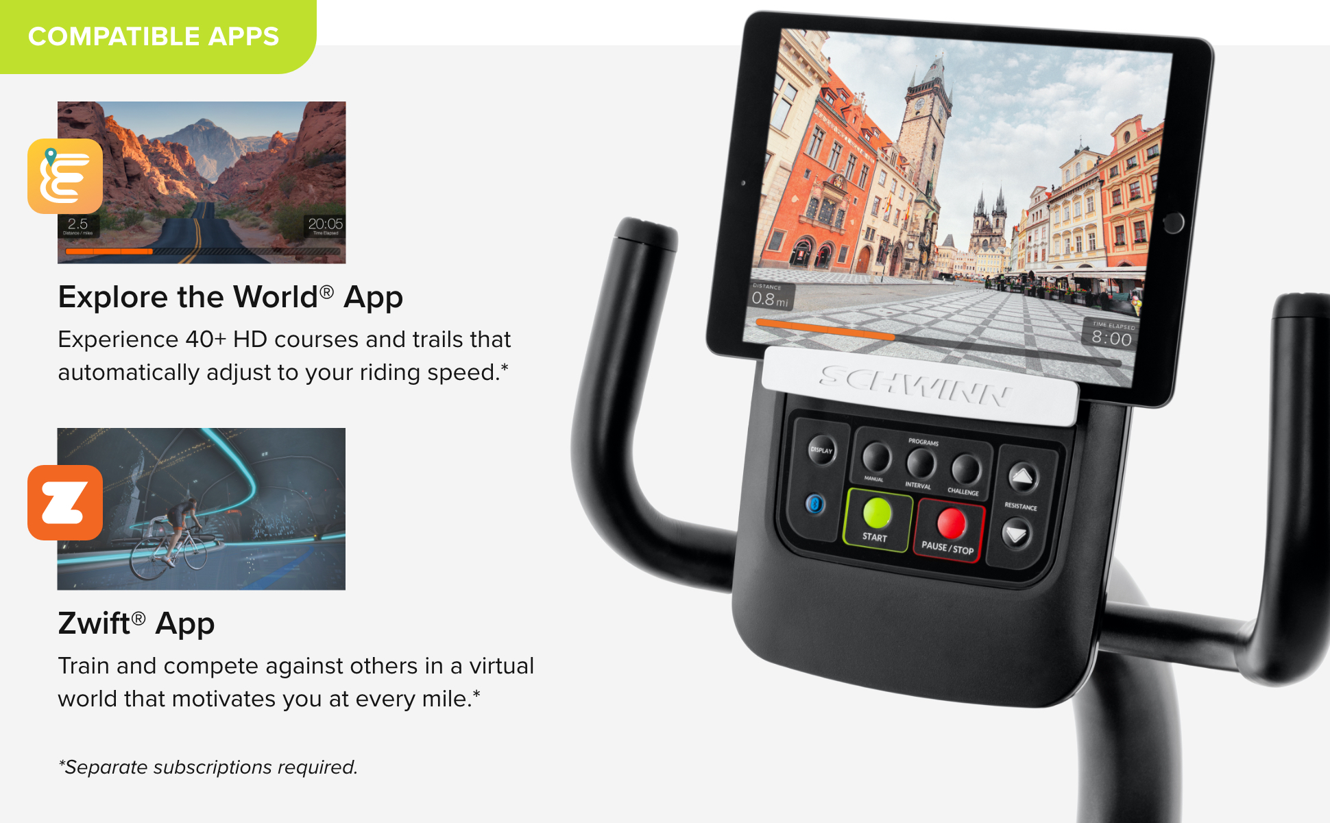 • Discover 1000 structured workouts and 80plus virtual routes by connecting with the Zwift app