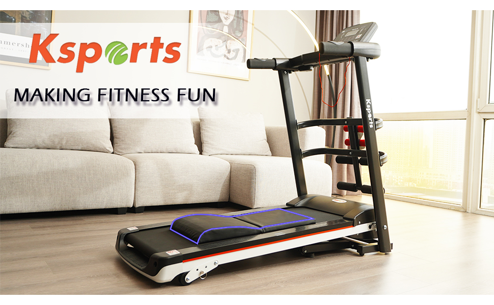 • 🏃【Total Exercise Package within a small footprint】Patent pending treadmill design provides a whole body workout- walk, run, sit ups & dumb bell exercises with running surface of 40Lx16W inches (1000x400 mm), folded dimensions of 25Lx23Wx49H inches (635Lx585Wx1245H mm).
