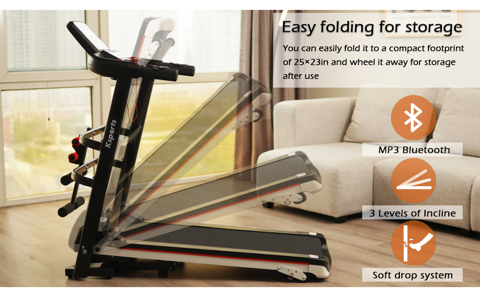 • 🏃【2.0HP motor, soft drop folding, 12 preset workout programs, 3 levels of manual inclines】12 preset programs to give you a wide variety of personalized workouts. You can also manually control the speed from 0.6-8 Mph over 3 levels of manual inclines.